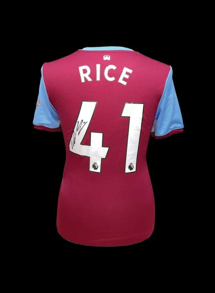 こちらが公式です ウェストハム·ユナイテッド ハンマーズのスター、デクラン・ライスによる背番号サイン入りの2019/20ホームシャツ。