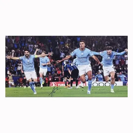 Capture the magic of Manchester City with our exclusive 30×16 inch signed photo of Rodri’s game-winning goal in the 2023 Champions League Final. Hand-signed by Rodri, at out signing with him in Manchester 22nd October, 2023, guaranteeing authenticity with a Certificate of Authenticity from Allstarsignings. Relive the unforgettable moment that made history. Don’t miss this opportunity to own a piece of City’s historic Treble.